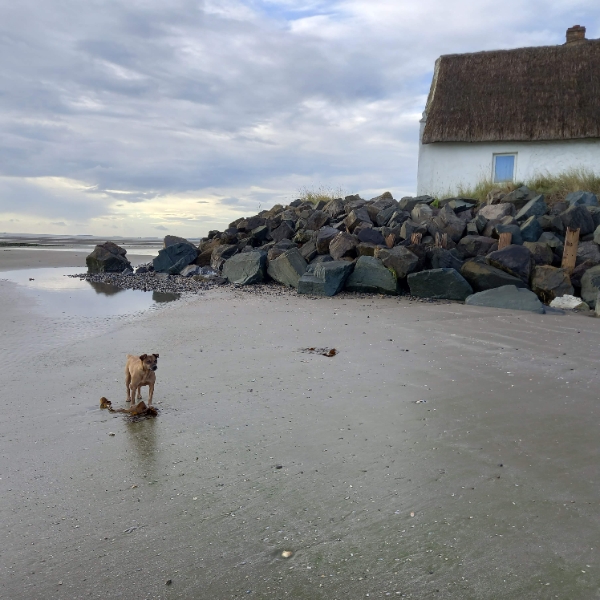 Home to Laytown. Walking this side of Bettystown beach always seems shorter as there's lots more than wildlife to distract me. The beautiful beach homes keep me mentally plotting which would be mine if I won the lottery. Minor challenge: I don’t play the lottery! At Laytown, Gilna’s Cottage Inn has the best coffee to break the walk and people watch. This was a Cody favourite: dogs never forget who gives them treats!