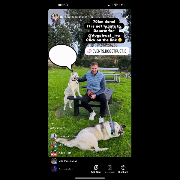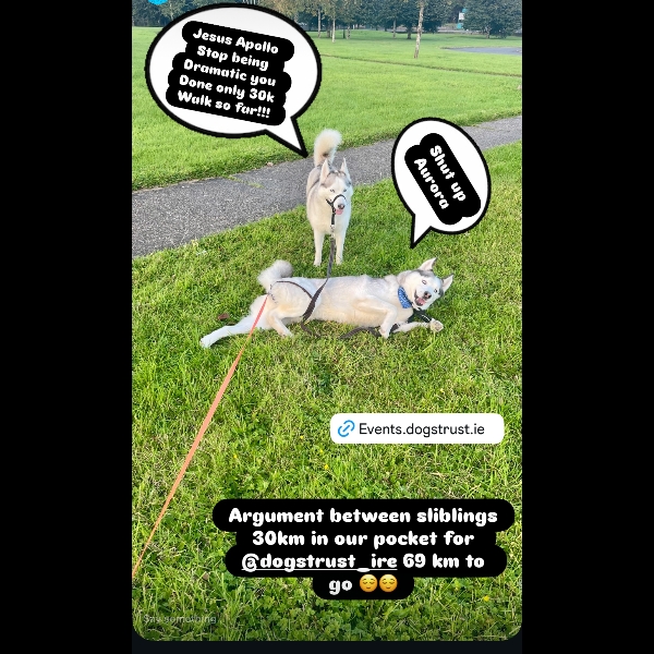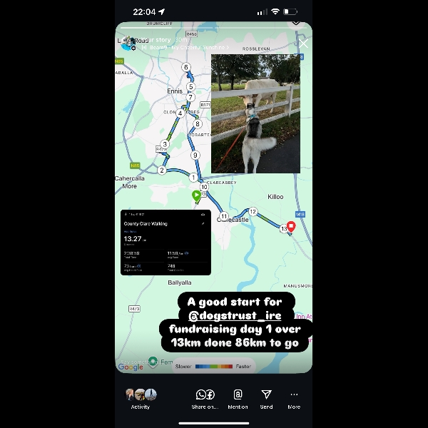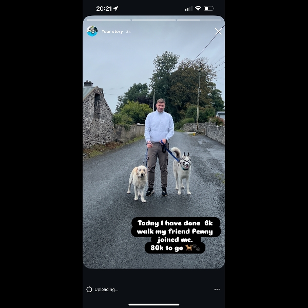 I'll be taking on a challenge of walking 99 kilometres in a month to help stray and abandoned dogs and puppies. Every euro raised gives the gift of a second chance to our furry friends in Dogs Trust Ireland's care - thank you for your support!